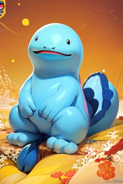 masterpiece,best quality,Quagsire,smooth,Punctate eyes,blue body,smile,full body,sitting,open mouth,pokemon \(creature\),no humans,(three toes:1.2),Thick tail<lora:EMS-343911-EMS:0.800000>