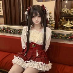 long_hair,1girl,sitting,christmas,very_long_hair,twintails,solo,standing,looking_at_viewer,arms behind back,<lora:da:0.8>,