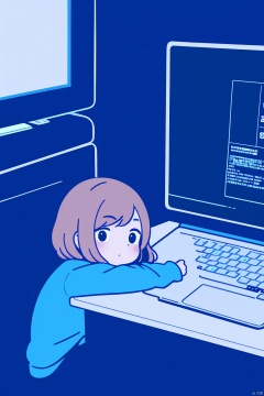 A laptop with a cute little girl sitting on the computer screen