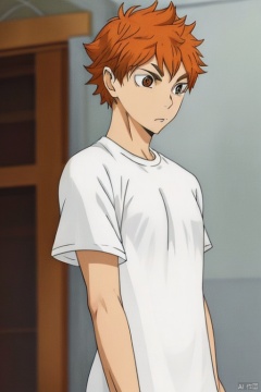 1boy, solo, white_shirt, full_body , outdoor, running, athletic filed,  hinata shouyou