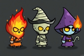 Three game characters, Fire Elemental Mummy Mage