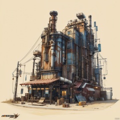 (masterpiece:1.2), best quality, masterpiece, cyber style factory, metal texture, complex pipe composition, rich details, metal hoses, gears, metal sheets, complexity, perfect lighting, CG,realism,unreal engine,concept art,building,