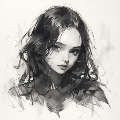 charcoal \(medium\), 1girl, solo, monochrome, greyscale, looking at viewer, portrait,