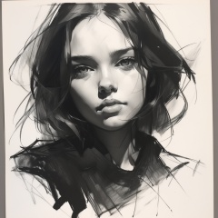 charcoal \(medium\), 1girl, solo, monochrome, greyscale, looking at viewer, portrait, sketch,
