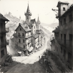 charcoal \(medium\), city, no humans, landscape, scenery,