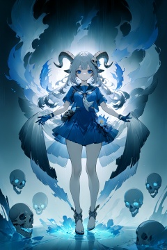 (1girl:1.5),solo,serafuku,lycoris flower,(goat skull:1),(horror),