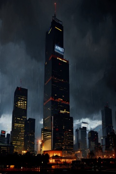 xxzr,<lora:xszr_v1.0:1>,chinese style terrorism,horror comics,cloud,rain,scenery,no humans,cloudy sky,sky,cityscape,city,building,night,outdoors,skyscraper,