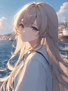 1girl,at the harbor,sea,wind,beautiful,upper body,looking at viewer,masterpiece,extremely detailed,best quality,very aesthetic