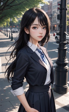 masterpiece,8k,best quality,1girl,solo,(depth of field),long hair,light,Volumetric Lighting,outdoors,school uniform