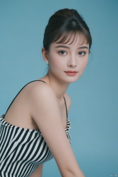 (masterpiece, best quality, hyper realistic, raw photo, ultra detailed, extremely detailed, intricately detailed), (photorealistic:1.4), (photography of Audrey Hepburn wearing a fashionable Striped off-the-shoulder ruffle hem dress, designed by Hubert de Givenchy, ), (smile), fairy, pure, innocent, beauty, (slender), super model, adr, Breakfast at Tiffany's, Sabrina, (glide_fashion),depthoffield,(fullshot),filmgrain,zeisslens,symmetrical,8kresolution,octanerender(OC渲染),extremelyhigh-resolutiondetails,finetexture,dynamicangle,fashion(时尚), fashion,,