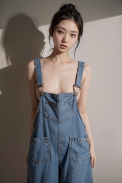 masterpiece,best quality,ultra high res,1girl,tashan naked overalls,Wide view,Romantic canclelight,Follow camera,<lora:20240412beidai-v1:0.6>,Orphanage shrouded in midnight shadows.,