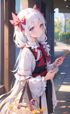 masterpiece,8k,best quality,loli,solo,white hair,((depth of field)),bowknot,long hair,light,
