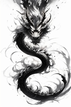 ((HRD, HUD, 8K)),((masterpiece, best quality)), highly detailed, soft light,InkAndWash, eastern dragon, dragon, monochrome, no humans, greyscale, horns, simple background, solo, white background, <lora:20240415-1713175931242:0.8>