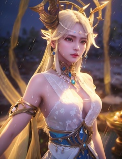 <lora:523-DA-神印王座-光明女神:0.8>(,1girl, ,best quality, ),looking at viewer, ,ultra detailed 8k cg, ultra detailed background, ultra realistic 8k cg, cinematic lighting, cinematic bloom, (( , )),, , unreal, science fiction, luxury, jewelry, diamond, pearl, gem, sapphire, ruby, emerald, intricate detail, delicate pattern, charming, alluring, seductive, erotic, enchanting, hair ornament, necklace, earrings, bracelet, armlet,halo,masterpiece, (( , )),, ,cherry blossoms,(((, night,night sky,, ultra high res, (photorealistic:1.4), raw photo, 1girl, , rain, sweat, ,wet, )))(( , )) (cleavage), (),