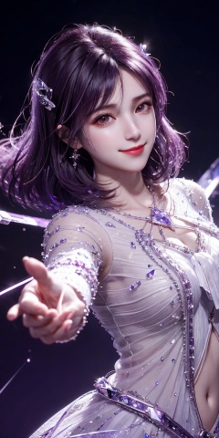 1 girl,(Purple light effect),hair ornament,jewelry,looking at viewer, , , dofas,(ultra-detailed crystallization),transparent crystals, , , , , xuxin