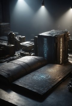 DonMU17r4G34rXL (masterpiece, best quality,detailed light), scifi, tech,   codices of arcane secrets, digital art, case binding, clothbound, papyrus,    reading lights,   (highres, 4k, 8k, intricate detail, cinematic lighting, amazing quality, amazing shading, soft lighting, Detailed Illustration, wallpaper),    <lora:Perfect Hands v2> <lora:SDXL\DetailedEyes_V3> <lora:myLoraXL_test\DonMU17r4G34rXL-000008:0.8>