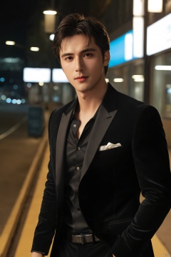 ((masterpiece)),((best quality)),((high detial)),((realistic)), depth of field,hubg_jsnh, hubgman,night, a handsome man