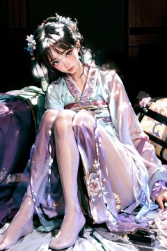 1girl, lying, bdsm, full body, perfect high detailed face, high detailed eyes, blushing, hanfu, WHITE PANTYHOSE, tutultb