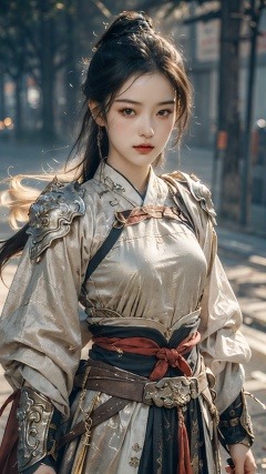 masterpiece,best quality,1girl, beautiful chinese girl, (beautiful detailed armor), (beautiful detailed hanfu), black eyes,see-through,
