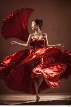 red chianese dress,illustration,,Cleavage,gufeng,  sky, Dance