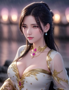 <lora:528-DA-万古狂帝-林柔:0.8>(,1girl, ,best quality, ),looking at viewer, ,ultra detailed 8k cg, ultra detailed background,  ultra realistic 8k cg,          cinematic lighting, cinematic bloom, (( , )),,  , unreal, science fiction,  luxury, jewelry, diamond, pearl, gem, sapphire, ruby, emerald, intricate detail, delicate pattern, charming, alluring, seductive, erotic, enchanting, hair ornament, necklace, earrings, bracelet, armlet,halo,masterpiece, (( , )),,  ,cherry blossoms,(((, night,night sky,,  ultra high res, (photorealistic:1.4), raw photo, 1girl, , rain, sweat, ,wet, )))(( , ))   (cleavage), (),