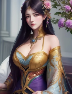 <lora:528-DA-万古狂帝-林柔:0.8>(,1girl, ,best quality, ),looking at viewer,,anime,(masterpiece, top quality, best quality, official art, beautiful and aesthetic:1.2), (1girl)        , , (cleavage),extreme detailed,(fractal art:1.3),colorful, flowers ,highest detailed,(by Jeremy Lipking)    (cleavage), (),