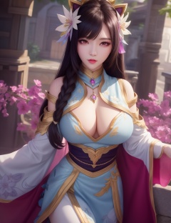 <lora:528-DA-万古狂帝-林柔:0.8>(,1girl, ,best quality, ),looking at viewer,  ,ultra detailed background,ultra detailed background,ultra realistic 8k cg,, ,masterpiece, (( , )),, , , spirit blossom \(league of legends\),   ,   (cleavage), (), ,,