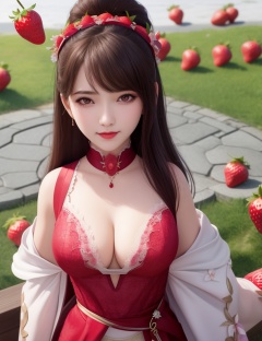 <lora:528-DA-万古狂帝-林柔:0.8>(,1girl, ,best quality, ),looking at viewer,masterpiece, (( , )),ultra realistic 8k cg, ,    ,cleavage,strawberry blossoms,lace , (cleavage), (),
