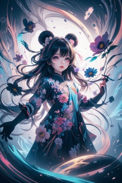 .,(loli:1.5),(5yo:1.5),(very_long_hair,:1.3),(masterpiece, top quality, best quality, official art, beautiful and aesthetic:1.2),(1 panda,illustration),extremely detailed,(fractal art:1.1),(colorful:1.1)(flowers:1.3),(dynamic pose),(abstract background:1.3),(many colors:1.4),