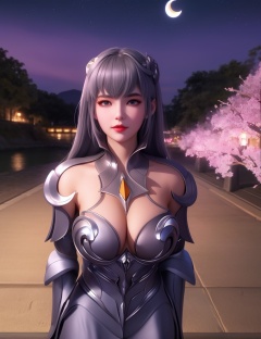 <lora:532-DA-斗罗大陆-叶泠泠:0.8>(,1girl, ,best quality, ),looking at viewer,masterpiece,(( , )),, realistic,science fiction,mole,,ultra realistic 8k cg,     ,cherry blossoms,,night, night sky, crescent moon, moonlight,,(facing viewer, looking at viewer, , ),  (cleavage), (),