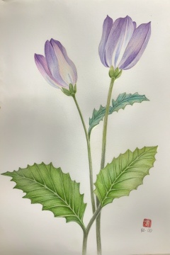 ((HRD, HUD, 8K)),((masterpiece, best quality)), highly detailed, soft light,ColoredLead, no humans, flower, simple background, traditional media, leaf, pink flower, still life, white background, signature, dated, purple flower, painting (medium), plant, watercolor (medium),  <lora:画风-彩铅-ColoredLead_v1.0:0.8>