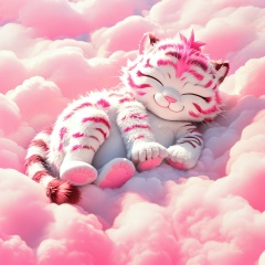 yinhu,tigger,fluffy,pink pattern,soft lighting,tiger boy,white fur,whimsy and dramatic lighting,warm colors,tigger focus,mf-movie-filter,cc-color-correction,cute,whiskers,:3,^ ^,no humans,closed eyes,on back,cloud,pink theme,lying,solo,closed mouth,cloudy sky,full body,smile,sky,red theme,white background,facing viewer,simple background,<lora:yinhu_rev:1>,