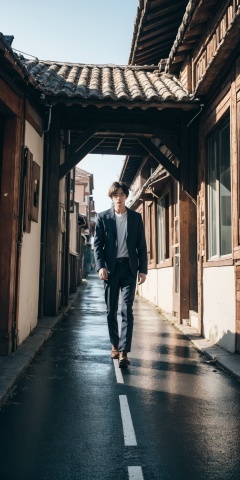 cinematic photo 1man,solo,looking at viewer,solo,full body,suburban scenery,