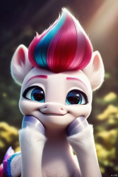 score_9, score_8_up, score_7_up, score_6_up, score_5_up, score_4_up, rating_safe, Zipp Storm, ((cute, little, fuzzy pony, fur)), (high quality, detailed, beautiful), shiny, adorable face, detailed beautiful eyes, diadema, sunlight, realistic, outstanding, countershading, detailed soft lighting, ear fluff, hoof on face, cinematic vintage photography