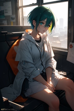 1girl, (sharp focus:1.2) , an award winning photo of a Infected Furious tan skin Rumer Willis with [Soothing|Impressive] eyes and Freckles, Short and slicked back, messy DayGlo green hair, sitting next to a window, dark lighting, (deep shadows:1.1) , high contrast, beautiful eyes, absurdres, 8k, (high quality:1.3) , tired, sleepy, poverty, sadness, depression, artstation hd, concept art, detailed face and body, award-winning photography, (moody lighting:1.2) , depth of field, bokeh, 4K, HDR