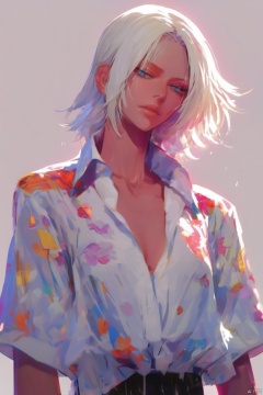 Beautiful Beauty White Shirt Deep V Movie Lighting Anime Character White Hair Lighting Effects 2D Crochet Thread White Background Collar Rain D Cups