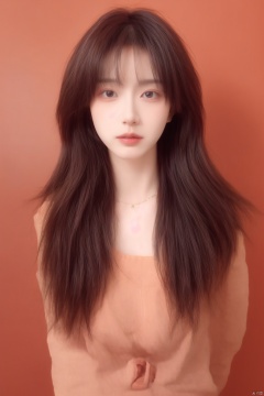 1girl, 1080P , standing, (portrait:1.2) , necklace, slender figure, lips, long hair, red background , shadow,moyou