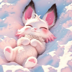maotu,rabbit,rabbit focus,soft lighting,white fur,whimsy and dramatic lighting,warm colors,mf-movie-filter,cc-color-correction,cute,whiskers,:3,^ ^,light particles,sunlight,no humans,closed eyes,lying,solo,fluffy,on back,closed mouth,simple background,facing viewer,sky,cloud,smile,outdoors,cat,white background,snow,full body,<lora:maotu_v1:0.8>,