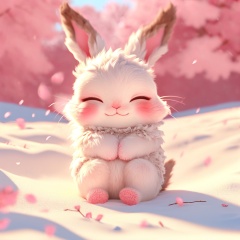 maotu, rabbit, rabbit focus, soft lighting, white fur, whimsy and dramatic lighting, warm colors, mf-movie-filter, cc-color-correction, cute, whiskers, :3, ^ ^, light particles, sunlight, no humans, closed eyes, solo, fluffy, blush, outdoors, closed mouth, smile, petals, sitting, facing viewer, blurry, full body, blurry background, happy, snow, cherry blossoms, simple background, day,<lora:maotu_v1:0.8>,