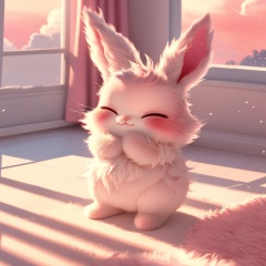 maotu, rabbit, rabbit focus, soft lighting, white fur, whimsy and dramatic lighting, warm colors, mf-movie-filter, cc-color-correction, cute, whiskers, :3, ^ ^, light particles, sunlight, no humans, window, closed eyes, indoors, solo, sky, blush, cloud, curtains, fluffy, full body, closed mouth, happy, facing viewer, blurry, standing, shadow, day,<lora:maotu_v1:0.8>,