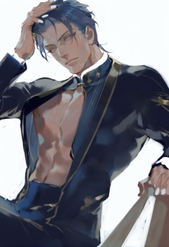 masterpiece, best quality, solo, 1boy, male focus, blue eyes, looking at viewer, white background  <lora:REIKOXLlokr8f:1>