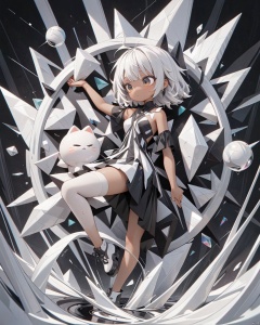 P14n03l3g4nt3b0n3, porcelain-skinned woman surrounded by ebony and ivory flegment, abstract modern art, dynamic geometric abstraction, kinetic energy in static forms, minimalist palette with crystal accents, expressionist brushstrokes andrecise angles, visual dissonance of fragmented time, emotional depth through abstract geometry, surreal interpretation of grief, juxtaposition of fluid motion and rigid structures, avant-garde exploration of form and emotion, immersive textures, stark contrasts with geometric dynamism, evocative symbolism, detailed hyperrealism, cinematic scope, artistic surrealism, captured in 8k resolution