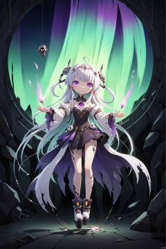 , TIANQIJI,1girl,casting spells,detailed face, detailed hand,fantasy,Aurora Borealis,dramatic lighting,shadows,(art by Harry Clarke Hiroshi Yoshida)