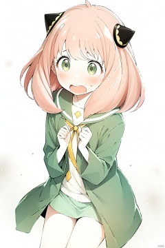 1girl,anya \(spy x family\),She is fashionably seifuku dressed in Hermes,cowboy shot,A shocked expression,