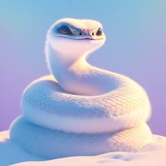 sishe, snake, cute, cc-color-correction, mf-movie-filter, warm colors, whimsy and dramatic lighting, white fur, soft lighting, fluffy, scales, white snake, snake focus, blue theme, blue background, no humans, close-up, simple background, day, looking at viewer, outdoors, oversized animal, snow, sky<lora:sishe_v1:0.8>,