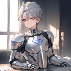 masterpiece, best quality,1 boy,jininag,Male, with short hair and silver armor, young and promising,