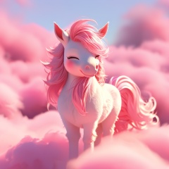 wuma, pony, whiskers, cute, cc-color-correction, mf-movie-filter, warm colors, whimsy and dramatic lighting, white fur, soft lighting, fluffy, pony focus, one eye closed, no humans, closed eyes, smile, closed mouth, blurry, outdoors, pink theme, blush, cloud, ;\), sky, pink hair, open mouth, full body, looking at viewer,<lora:wuma_v1:0.8>,