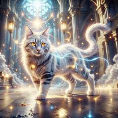 <lora:HolyMagic:0.9>, holymagic , fantasy, divine aura,  magical energy,mystical beast, glowing eyes,animal , cat