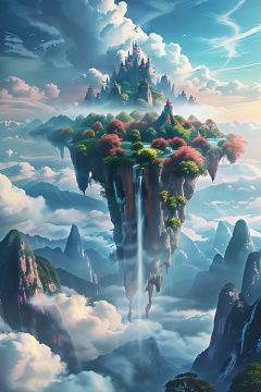 scenery,cloud,sky,outdoors,bird,no humans,cloudy sky,castle,tower,mountain,tree,day,flock,landscape,MHXD,