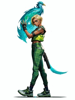 HEZI,Valenlott style,European and American cartoon character design,cutting,dividing,angular,features,weapon,holding gun,gun,holding weapon,holding,shoes,fingerless gloves,gloves,arm tattoo,tattoo,1boy,pants,white footwear,white background,from side,sneakers,male focus,bird,short hair,handgun,goggles,nose piercing,alternate costume,black gloves,dark skin,socks,solo,looking at viewer,blonde hair,piercing,earrings,brown pants,green eyes,jewelry,parted lips,animal on shoulder,simple background,dark-skinned male,official alternate costume,creature,sleeveless,1girl,animal,ear piercing,black pants,,<lora:欧美卡通人物设计V2版本-000012:0.7>,